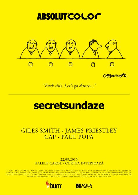 Pe 22 august, Absolut Color prezintă secretsundaze, o seară destinată seriei de petreceri diurne londoneze, alături de fondatorii săi, Giles Smith și James Priestley.