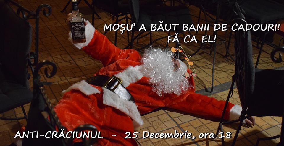 Dacă nu ai copii sau pur și simplu te-ai săturat de clișeele și luminițele de Crăciun, în seara de 25 decembrie avem pentru tine un playlist cu muzică care ia Crăciunul peste picior, pentru că sărbătorim la bar Anti-Crăciunul.