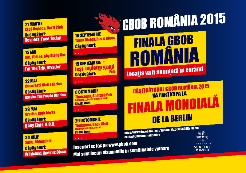 THE GLOBAL BATTLE OF THE BANDS (GBOB, Bătălia mondială a formațiilor) este cea mai mare și cea mai apreciată competiție de muzică Live din lume. GBOB este competiția dedicată formațiilor de toate genurile muzicale, aflate în diverse etape de popularitate, organizată în 30 de țări pe 5 continente.