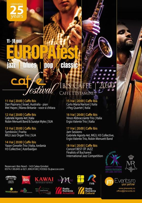 Sub sloganul „It’s all about live quality music!”, EUROPAfest, singurul festival din Europa care reunește 4 genuri muzicale – jazz | blues | pop | clasic prezintă în perioada 10 – 19 mai, artiști din 26 de țări. Pe lângă Caffe Festival Ibis agenda EUROPAfest mai cuprinde Opening Concert – București | Sibiu, concerte live de jazz, blues, pop și muzică clasică, Bucharest International Jazz Competition, Jeunesses International Music Competition Dinu Lipatti, master-classes și workshopuri, Festival’s corner și Gala EUROPAfest.