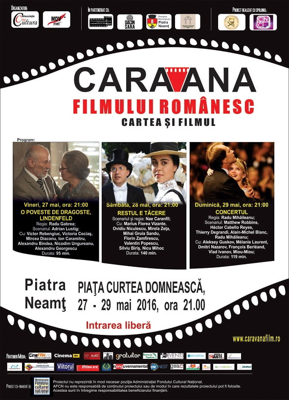 Şi, pentru că proiectul “Caravana filmului românesc” s-a născut tot din dragostea faţă cinematografie şi realizatorii români de film, continuă și în al patrulea an promovarea filmului românesc din toate timpurile, aducând un omagiu cinematografiei naţionale şi cineaştilor români. Evenimentul este organizat de Asociaţia CineCultura în colaborare cu Primăria Muncipiului Piatra Neamţ.