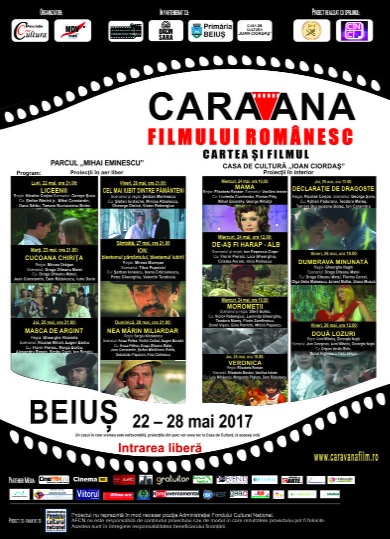 Programul complet al proiecţiilor de la “Caravana filmului românesc” în municipiul Beiuş este următorul: