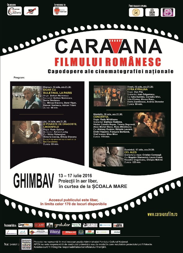 Afis Caravana la Ghimbav webCaravana filmului românesc – Capodopere ale cinematografiei naţionale” continuă periplul prin ţară după ce, timp de o săptămână, publicul din Tulcea a fost invitat să vizioneze unele dintre cele mai frumoase filme româneşti realizate în ultimii ani.