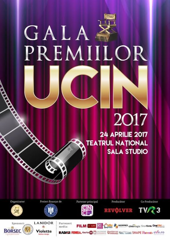 Gala Premiilor UCIN 2017 va fi prezentată de frumoasa actriță Cătălina Grama (alias Jojo), iar juriul, prezidat de Maia Morgenstern alături de membrii: Ileana Popovici, Sorin Ilfoveanu, Tudor Giurgiu, Florin Mihăilescu, Varujan Vosganian și Ştefan Velniciuc vor decide cine sunt câștigătorii premiilor la cele 21 de categorii.