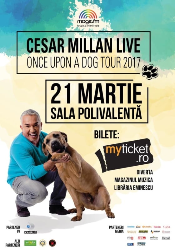 Marți, 21 martie, Cesar Millan, cel mai talentat psiholog și antrenor canin, își va face apariția în premieră pe scena Sălii Polivalente din capitală în show-ul de excepție, prezentat cu succes pe marile scene europene în cadrul turneului “Once Upon a Dog Tour”.