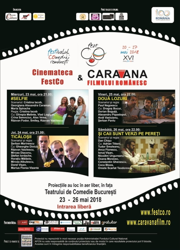 Pentru al cincilea an consecutiv, Cinemateca festCO & Caravana filmului românesc oferă publicului bucureştean posibilitatea de a viziona filme în aer liber, în cadrul Festivalului Comediei Româneşti – festCO.