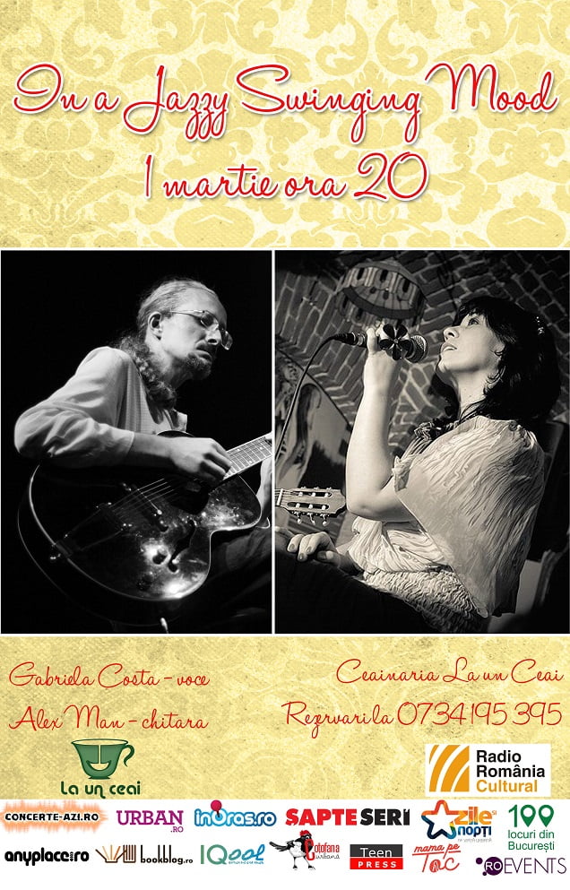 Întâmpinăm primăvara cu un concert de jazz plin de tandrețe și simțire, alături de Gabriela Costa (voce) și Alex Man (chitară)