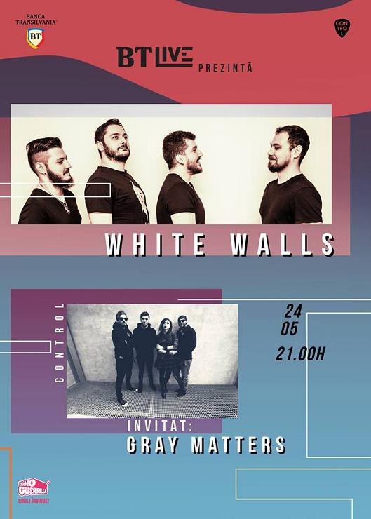 Pe 24 mai, BT Live își lărgește sfera muzicală, aducându-i pe scena clubului Control pe constănțenii de la White Walls, care vor performa alături de tânăra trupa Gray Matters, invitată să preia ștafeta și să concerteze de la ora 21.00.