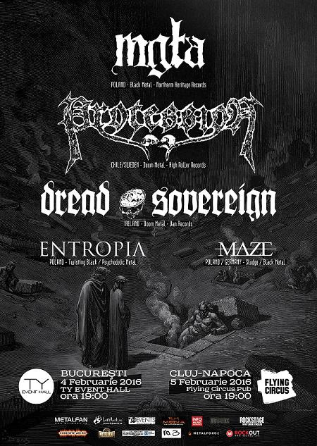 Copy of Romania 2016Programat inițial în Colectiv, concertul Mgła, Procession, Dread Sovereign, Entropia si Maze de la Bucuresti se mută, intr-o noua locatie, mai exact TY Event Hall.