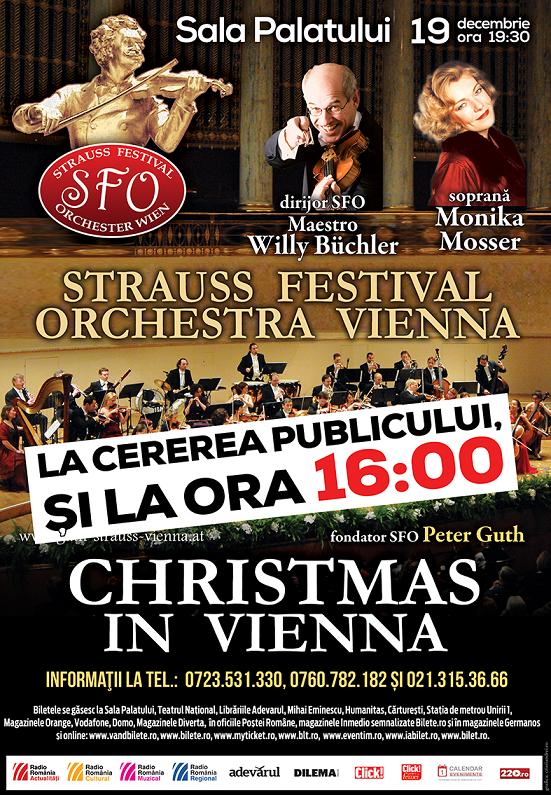 La cererea publicului, concertul “Christmas in Vienna” va avea loc și de la ora 16.00. Publicul va beneficia de același program și aceeași strălucire ca la spectacolul de seara, dar prețurile vor fi mai mici, pentru a veni în întâmpinarea tuturor categoriilor de populație.