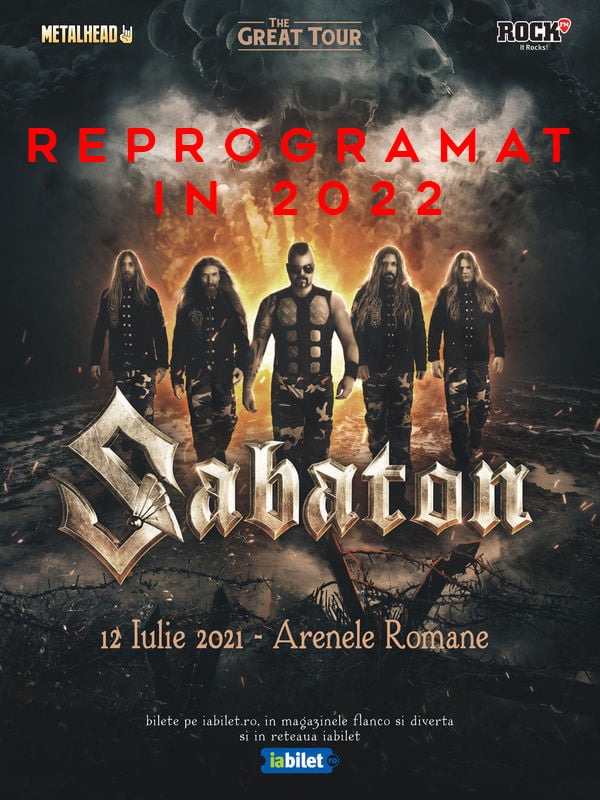 Turneul Sabaton care urma sa treaca si prin Romania se reprogrameaza in 2022, inclusiv data de la Bucuresti, din cauza situatiei epidemiologice la nivel mondial.