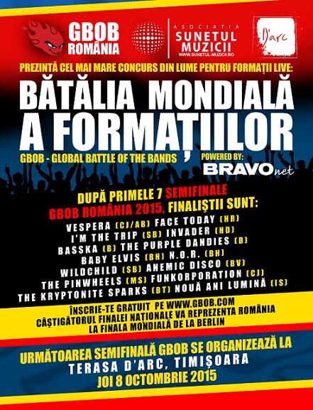 THE GLOBAL BATTLE OF THE BANDS (GBOB, Bătălia mondială a formațiilor) este cea mai mare și cea mai apreciată competiție de muzică Live din lume. GBOB este competiția dedicată formațiilor de toate genurile muzicale, aflate în diverse etape de popularitate, organizată în 30 de țări pe 5 continente.