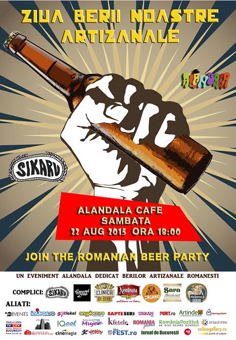 Iubitorii de bere sunt invitati la Ziua berii noastre artizanale, in Alandala Club, sambata, 22 august 2015, de ora 18:00.