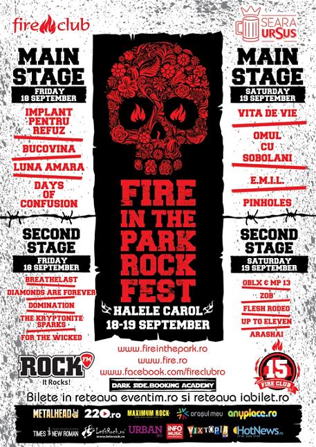 Fire In The Park Rock Fest va avea loc pe, 18 și 19 septembrie, la Halele Carol din București. Evenimentul este dedicat aniversării a 15 ani de existență a Fire Club, un loc emblematic, sinonim cu generația anilor 2000.