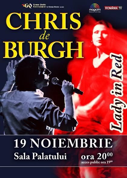 Asadar, va invitam in a doua jumatate a lunii noiembrie la un eveniment de marca, sa purtati cu dragoste rosu aprins, sa veniti insotiti de persoana iubita si sa savurati fiecare melodie a celebrului Chris de Burgh, din care nu vor lipsi Don’t Pay the Ferryman, Spaceman, High On Emotion, Missing You, So Beautiful sau Spanish Train, dar si melodii de pe ultimul material: The Hands of Man.