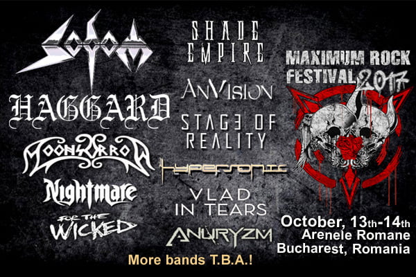 Haggard, Anvision și Hypersonic sunt noile nume confirmate pentru noua ediție Maximum Rock Festival care va avea loc în perioada 13-14 octombrie la Arenele Romane din București.