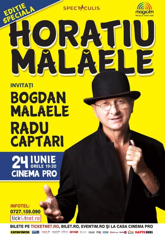 Cu o excepţională inventivitate scenică şi cu un suflu epic unic ce păstrează realismul terifiant sub nota hazului de necaz, actorul Horațiu Mălăele, împreună cu Bogdan, fiul său cel mare, invită publicul spectator la o nouă “Ediție Specială”, ce va avea loc sâmbătă, 24 iunie, la Cinema PRO din capitală, de la ora 19:30.