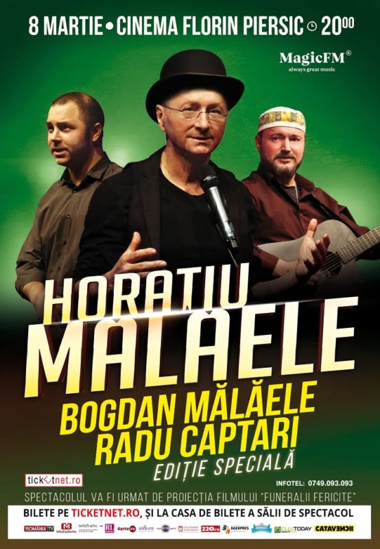 Spectatorii vor asista la un dublu eveniment întrucât spectacolul “Ediție Specială” va fi urmat de proiecția filmului ”Funeralii Fericite”, în mod gratuit. Pelicula este o tragi-comedie excepțională ce îl aduce pe Horațiu Mălăele atât în ipostaza de actor, cât și în cea de regizor. Producția ilustrează o lume populată de personaje ciudate în care comedia neagră îmbină satira socială cu drama psihologică, pe muzica marelui compozitor Vladimir Cosma.