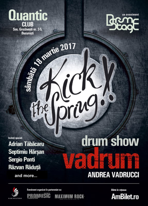 “Kick the Spring” îl va aduce primăvara aceasta pe scena din Quantic pe binecunoscutul toboșar Andrea Vadrucci „VADRUM” alături de care vor urca pe scenă invitații speciali Adrian Tăbăcaru, Septimiu Hărșan, Sergio Ponti și Răzvan Răduță.