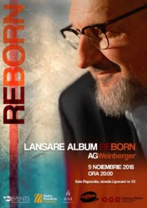 Împătimiţii de blues şi jazz sunt invitați vineri, 9 noiembrie 2018, la Sala Rapsodia din București unde va avea loc un concert de excepție marca AG Weinberger, ce marchează lansarea celui de-al 9-lea album al său, ReBorn. Albumul însumează un ansamblu de caracteristici și discursuri muzicale, care ne conduce în lumea unică a artistului. Prin această lucrare AG atinge o stare de maturitate și relaxare, atât de necesară pentru a-și asigura continuitatea prezenței sale în rândul celor de nivel internațional. Muzici noi, livrare excelentă, producție de talie mondială… Cele 12 piese depăsesc cu mult obișnuitele clișee ale genului blues, iar armoniile și ritmurile neobișnuite conferă prospețime limbajului mixt muzical. Pe albumul ReBorn putem asculta de la shuffle până la big easy second line, de la pop blues până la baladă country sau jazz. Discul a fost înregistrat la Budapesta, în studioul Origo cu o echipă din Ungaria, iar piesa ‘The Fool’s Lucky Day’ îl are ca invitat special pe legendarul Bob Margolin – care a fost chitaristul lui Muddy Waters.
