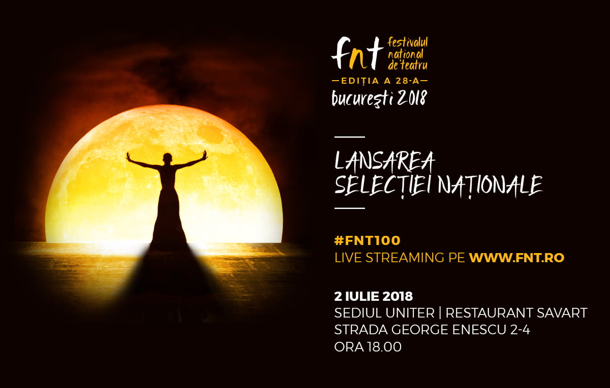 Criticul Marina Constantinescu, director artistic şi selecţioner al Festivalului Naţional de Teatru, va anunţa selecţia oficială a celei de-a 28-a ediţii, luni, 2 iulie, de la ora 18.00, în sistem live streaming pe site-ul www.fnt.ro și pe pagina oficială de Facebook a Festivalului.