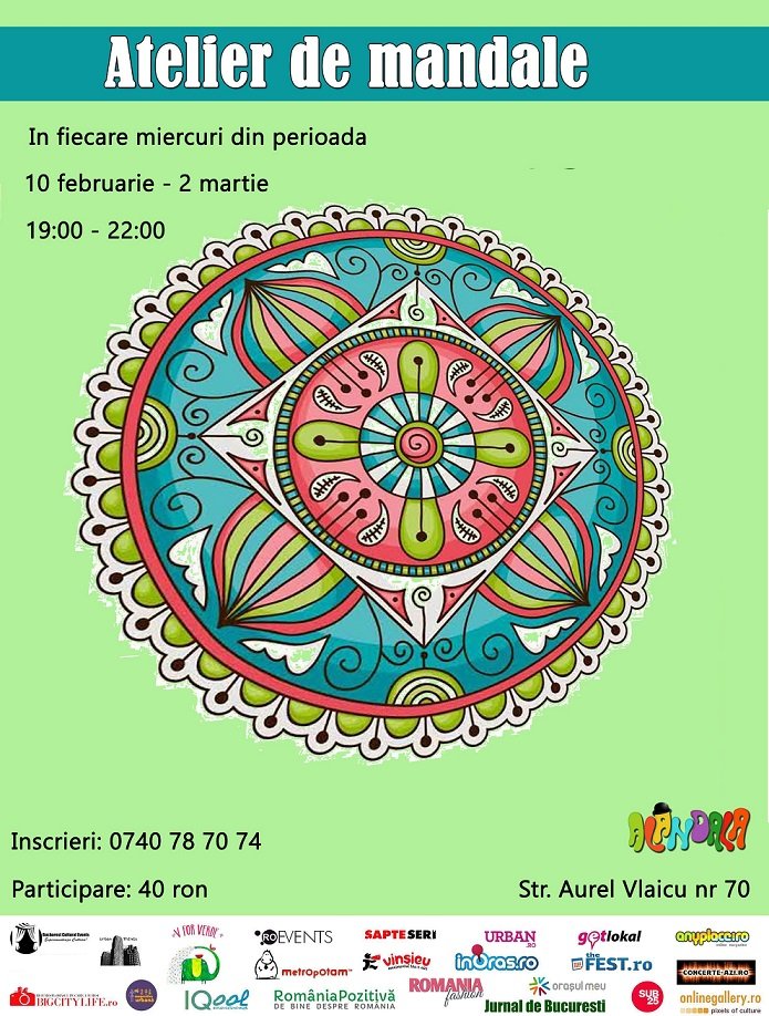 Inscrierea la atelierul de Mandale in Alandala se face la telefon: 0740787074 sau la adresa de email:papeemoee@gmail.com