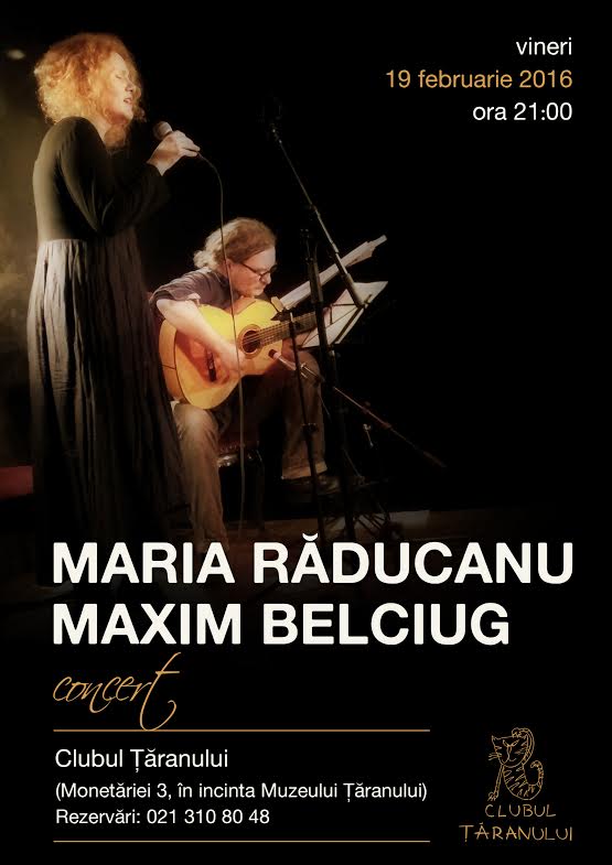 Vineri, 19 februarie 2016, cu începere de la ora 21:00, la Clubul Ţăranului are loc un concert special: Maria Răducanu și Maxim Belciug oferă publicului bucuria unei reîntâlniri live cu muzica lor în care, vorba poetului Federico Garcia Lorca, se sparg cupele arborilor pline cu dimineaţă.