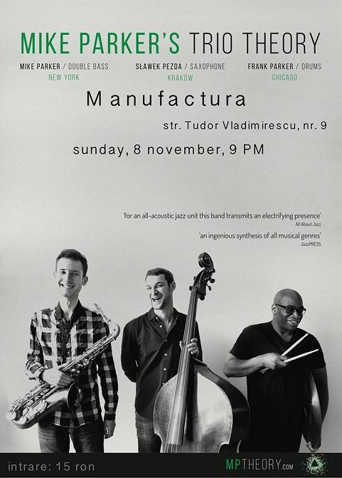 Duminica, 8 noiembrie 2015, orele 21:00, va invitam la un concert de jazz sustinut de Mike Parker’s Trio Theory, la Timisoara in clubul Manufactura.
