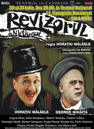30 şi 31 IULIE – REVIZORUL – comedie spumoasă de situaţie, generată de apariţia într-un oraş de provincie a unui călător venit  din “capitală”, care este luat drept un revizor aşteptat în inspecţie.