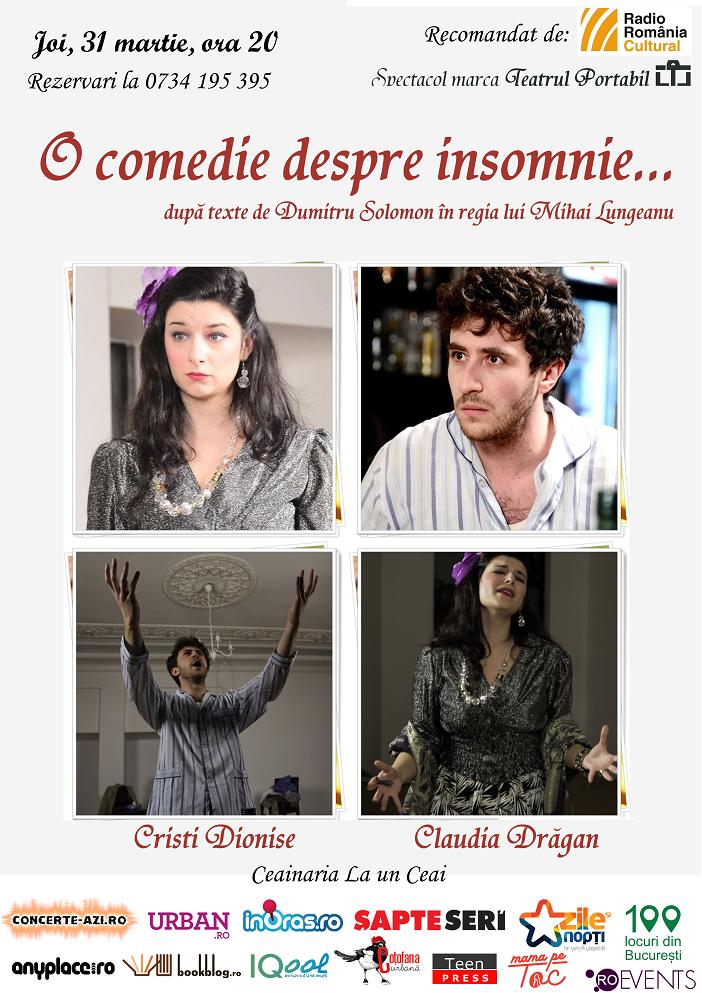 Vă invităm la Ceainăria La un Ceai la o comedie molipsitoare despre insomnia unui bărbat care nu se ridică la noile standarde ale soţiei sale, proaspăt “culturalizată”.