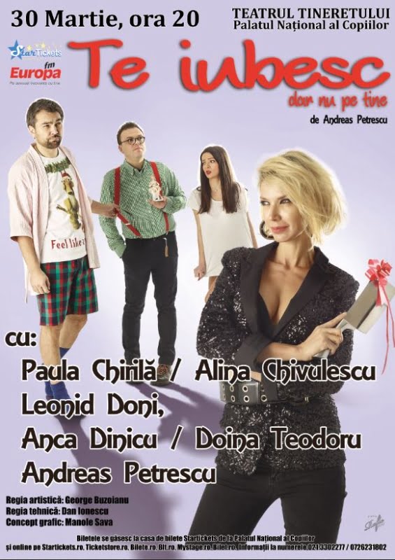 Pe 30 martie sunteţi invitaţi, la Palatul Naţional al Copiilor, la premiera “Te iubesc, dar nu pe tine!”