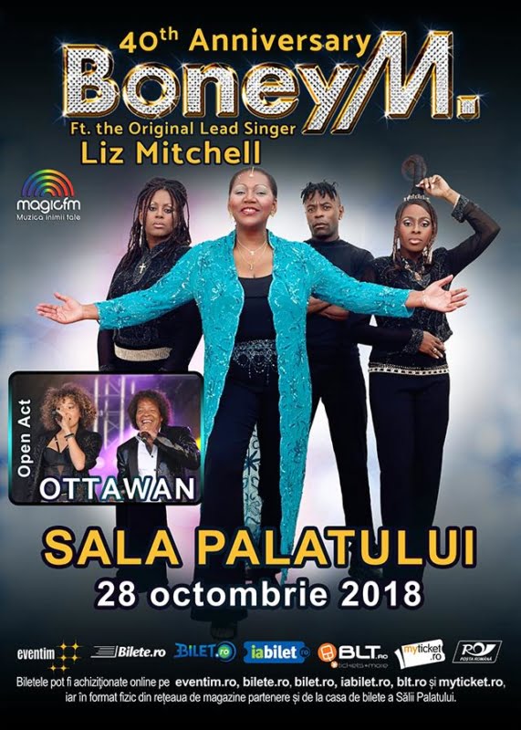 Boney M feat Liz Mitchell, original lead singer, aniversează printr-un spectacol full band 40 de ani de când hit-urile ”By the rivers of Babylon” și ”Rasputin” au cucerit lumea. Invitatul de marcă este Ottawan, celebru mai ales cu “D.I.S.C.O.”, “Hands Up (Give Me Your Heart)” și ”Crazy music”.