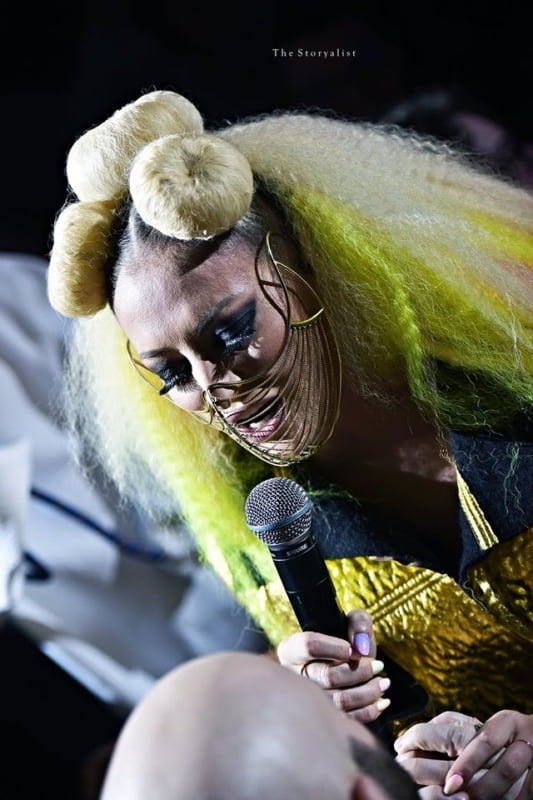 Pe “1,2,3,4” in PSIHEDELIA a urmat o explozie de culoare si dans, pe scena alaturi de Delia si baletul COBO au urcat si personajele ciudate de la inceputlui show-ului. Unul dintre cele mai hipnotizante personaje de pe scena a fost diva Amazon Ashley a.k.a. “Big Momma”, dansatoare si personaj celebru din Statele Unite, devenita cunoscuta in special dupa turneul in care a insotit-o pe Miley Cyrus. Amazon Ashley a poza in look-ul deja iconic al primului poster PSIHEDELIA, cu ochelarii ascutiti portocalii si peruca multicolora/curcubeu.
