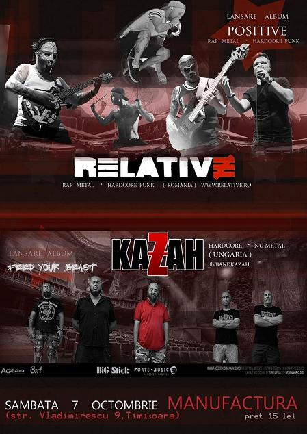 Sambata, 7 octombrie 2017, orele 21:00, trupa clujeana Relative lanseaa albumul “Positive” la Timisoara in clubul Manufactura, avandu-i ca invitati pe maghiarii de la Kazah.