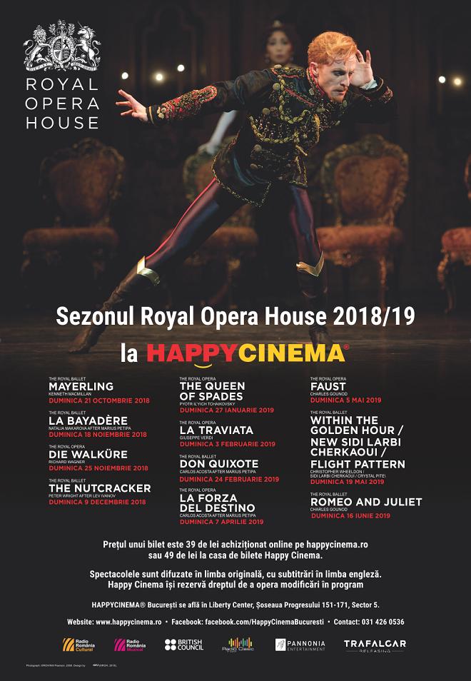 Happy Cinema se alătură celor peste 500 de cinematografe din Marea Britanie și altor 1000 locații din 40 de țări din toată lumea care difuzează noul sezon Royal Opera House.