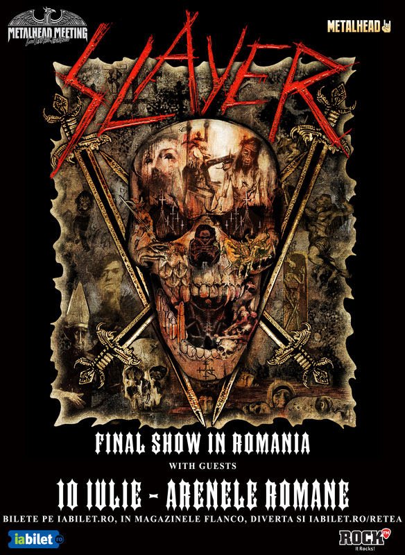 SLAYER va canta ultimul show din cariera in Romania la Bucuresti, pe 10 iulie 2019 la Arenele Romane in cadrul Metalhead Meeting 2019 aniversand si 15 ani de METALHEAD in Romania! Biletele se pun in vanzare vineri pe 14 decembrie la ora 10:00 iar primele 1000 de bilete au pret special.