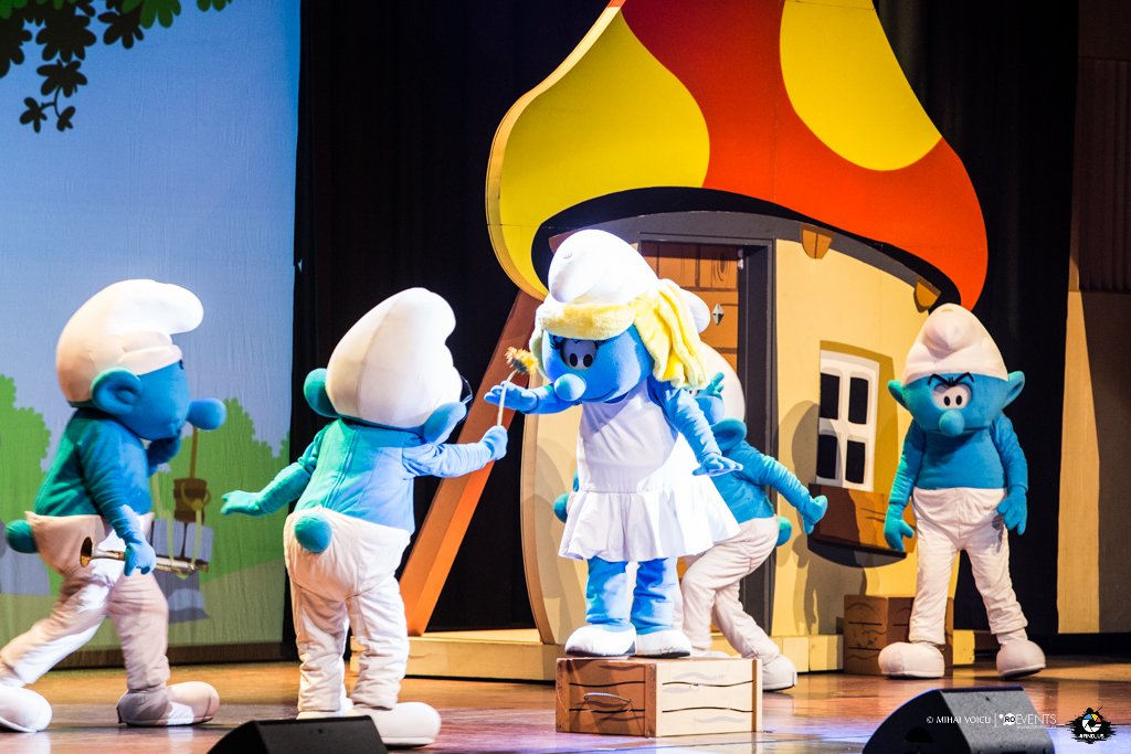A fost un spectacol de aproape doua ore in care cei mici s-au distrat alaturi de parinti si bunici, urmarind aventurile albastrilor. Spectacolul a fost un episode din celebrele desene, un episode despre primavara, prietenie si despre cum binele invinge.