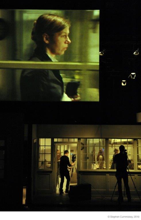 În spectacolul berlinez „Domnișoara Julie”, celebra regizoare Katie Mitchell și reputatul artist video Leo Warner re-imaginează textul clasic al lui Strindberg, folosind mijloace filmice și efecte sonore live, cu ajutorul cărora spectacolul tensiunilor pasionale dintre aristocrata Julie și majordomul Jean sunt prezentate din perspectiva logodnicei lui Jean, bucătăreasa Kristin.