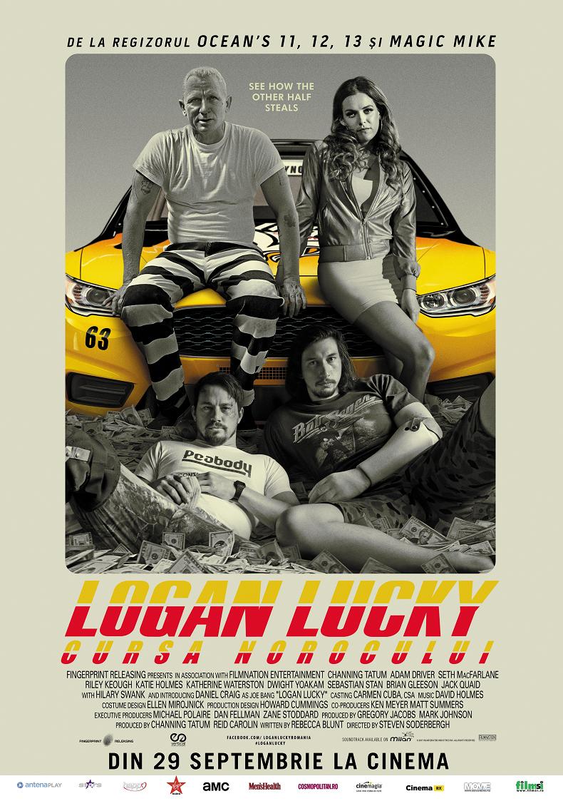 Cu o distribuţie de zile mari, completată de Seth MacFarlane, Katie Holmes, Katherine Waterson, Dwight Yoakam şi Sebastian Stan, comedia “Logan Lucky: Cursa norocului” are premiera în cinematografele din ţară pe 29 septembrie, fiind distribuit de Vertical Entertainment.