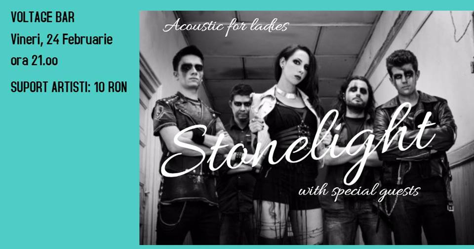 Vineri, 24 februarie, Stonelight repeta prima experienta a unui acustic set, tot in Club Voltage – in cadrul “Stonelight – Acustic for Ladies“, insa de data asta va fi o seara cu un playlist dedicat doamnelor si domnisoarelor, care va consta atat in variantele acustice pentru cateva piese de pe albumul de debut, dar si coveruri neasteptate!