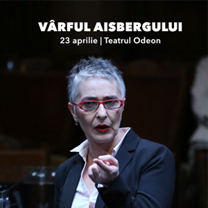 De la ora 20.30 ne mutăm în Sala Majestic unde actorii Dorina Darie-Peter, Bogdan Costea, Ioan Peter, Cecilia Lucanu-Donat, Ştefan Statnic, Călin Stanciu vor oferi publicului bucureştean frânturi din actualitatea internaţională a mediilor tehnologice, din zarva „relaţiilor interpersonale” a „lumii competitive şi ostile care ne afectează pe toţi”. (Theodor-Cristian Popescu). Este vorba despre spectacolul Vârful aisbergului de Antonio Tabares, a cărei regie o semnează Theodor-Cristian Popescu. Scenografia este creată de Cosmin Ardeleanu.