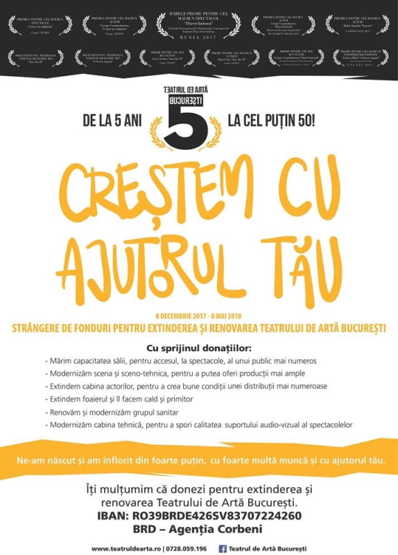 Așadar, la început de 2018, Teatrul de Artă București lansează oficial campania “Creștem cu ajutorul tău” – strângere de fonduri pentru extindere și renovare.