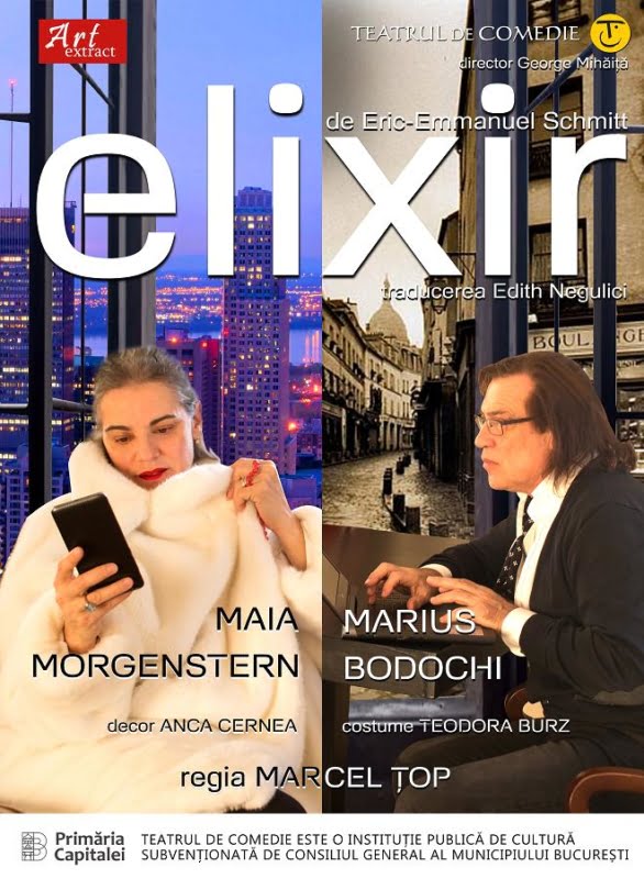 “Elixir” este una dintre cele mai noi piese scrise de Eric-Emmanuel Schmitt, piesa având premiera la Paris în anul 2015.