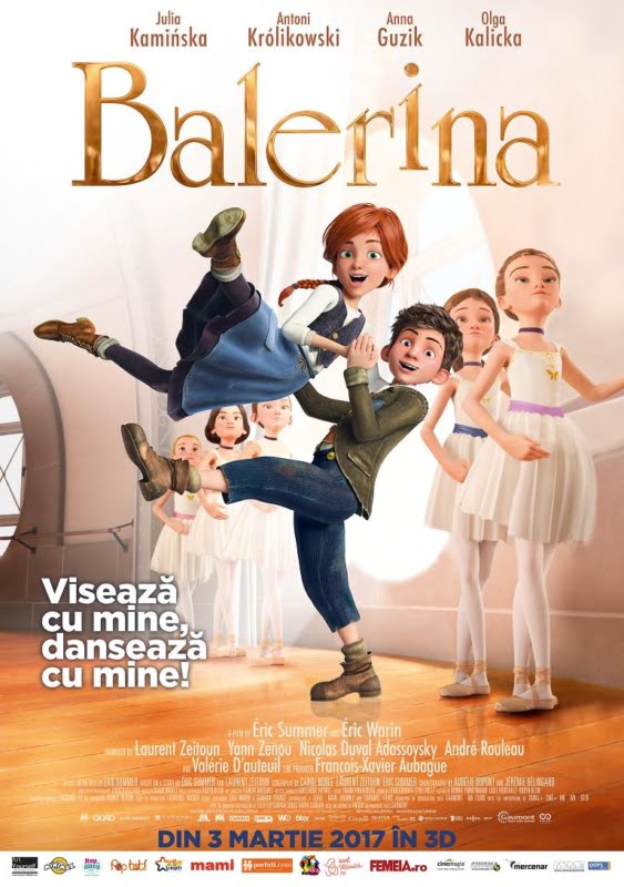 Animaţia 3D “Balerina” prezintă aventura lui Felicie, o tânără orfană care are o singură pasiune: dansul. Alături de Victor, cel mai bun prieten al său care îşi doreşte să devină un inventator renumit, pun la cale un plan extrem de îndrăzneţ pentru a fugi din orfelinat direct la Paris, Oraşul Luminilor şi al tuturor posibilităţilor.