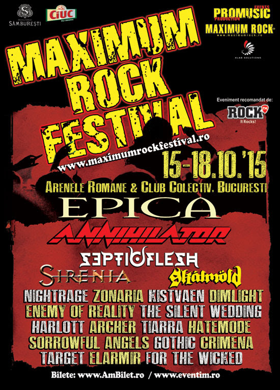 Maximum Rock Festival 2015 este o sarbatoare metal cu acte in regula. Pe langa concerte, la eveniment se vor desfasura diverse activitati interactive, expozitii, targuri de merchandise, performance-uri si multe altele.