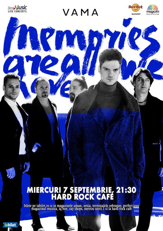 Miercuri , 7 septembrie de la ora 21:30, BestMusic Live Concerts te invita la Hard Rock Café sa traiesti o noua experienta alaturi de trupa ta preferata, Vama! Mai ales ca in fata scenei nu vom avea mese, dansul este garantat !