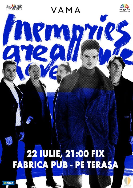 Vineri , 22 iulie de la ora 21:00 fix, fix, BestMusic Live Concerts te invita la Fabrica pe terasa in aer liber sa traiesti o noua experienta alaturi de trupa ta preferata, VAMA !