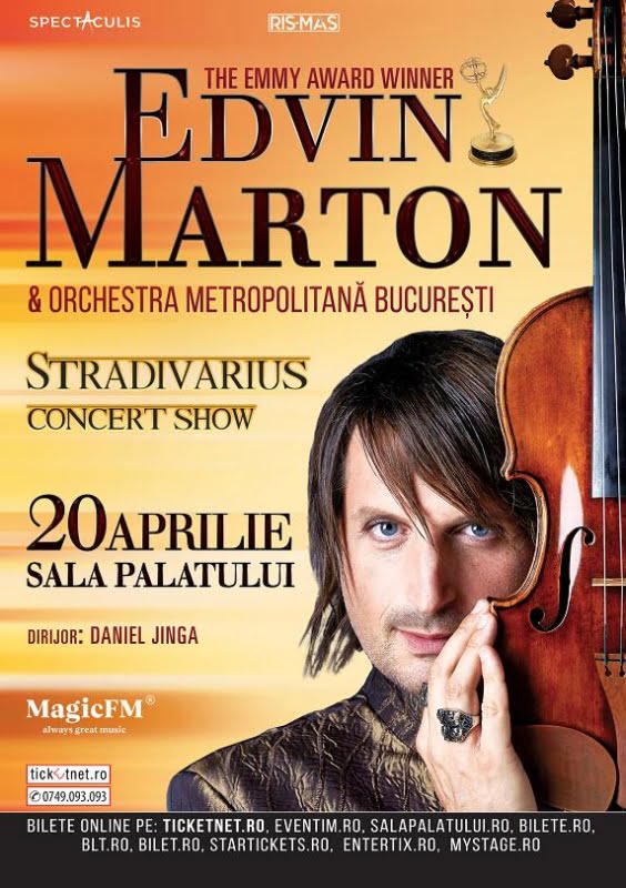 Renumitul violonist și compozitor Edvin Marton, apreciat pentru stilul său unic de a fuziona muzica clasică cu pop-rock-ul zilelor noastre, sustine un concert la Sala Palatului din București, pe 20 aprilie, începând cu ora 19:30.