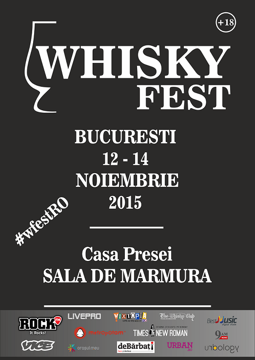 Prima ediție a Whisky Fest va avea loc la Casa Presei, Sala de Marmură, în perioada 12 – 14 noiembrie 2015, fiind primul eveniment dedicat în întregime uneia dintre cele mai apreciate băuturi ale tuturor timpurilor – whisky-ul.