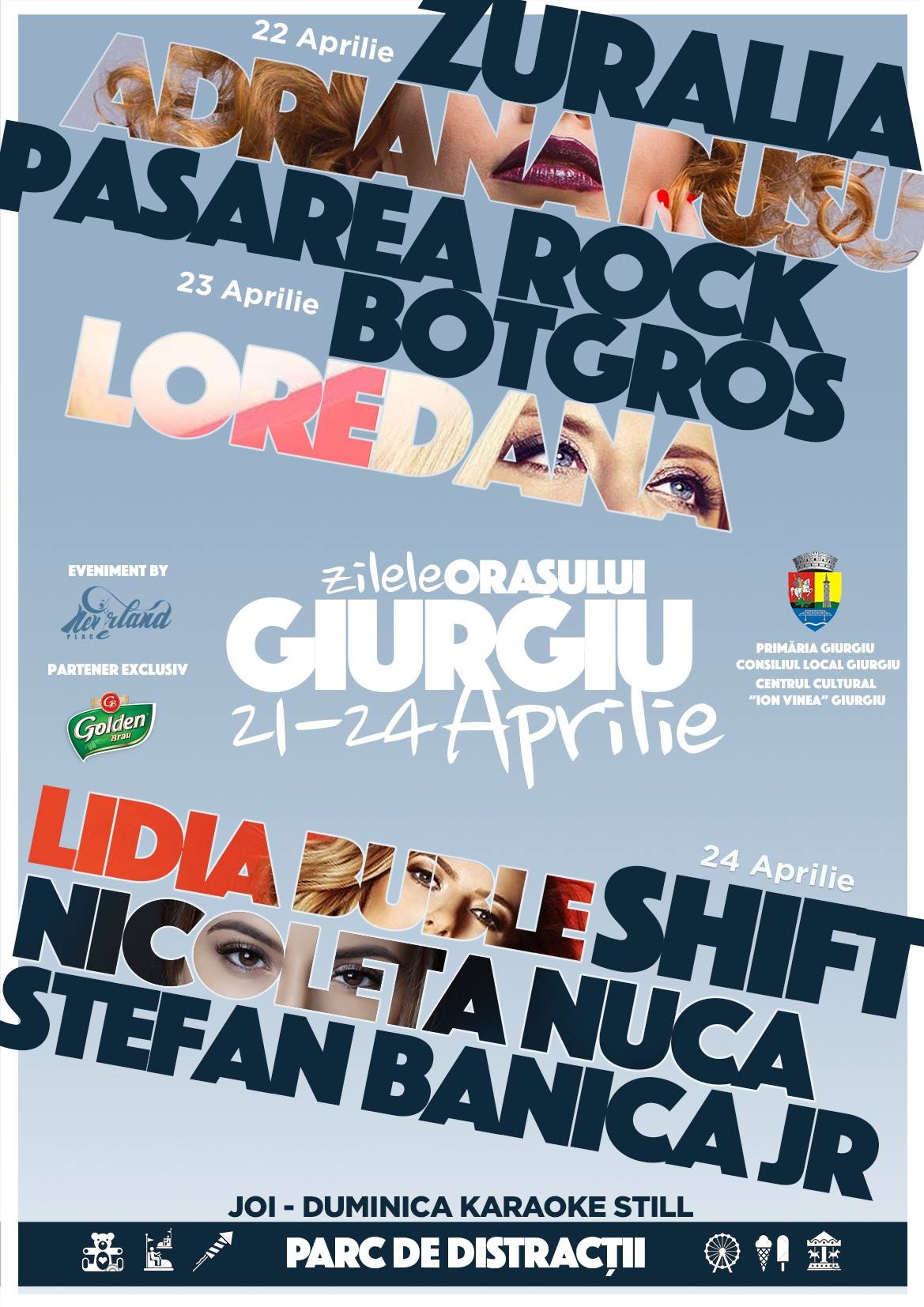 Evenimentul, inscris in calendarul festivalului “Primavara culturala giurgiuveana“, se va bucura de prezenta unor artisti de top din muzica romaneasca. Pe scena din Piata Unirii vor urca Loredana, Stefan Banica Jr., Pasarea Rock si Orchestra Zuralia.